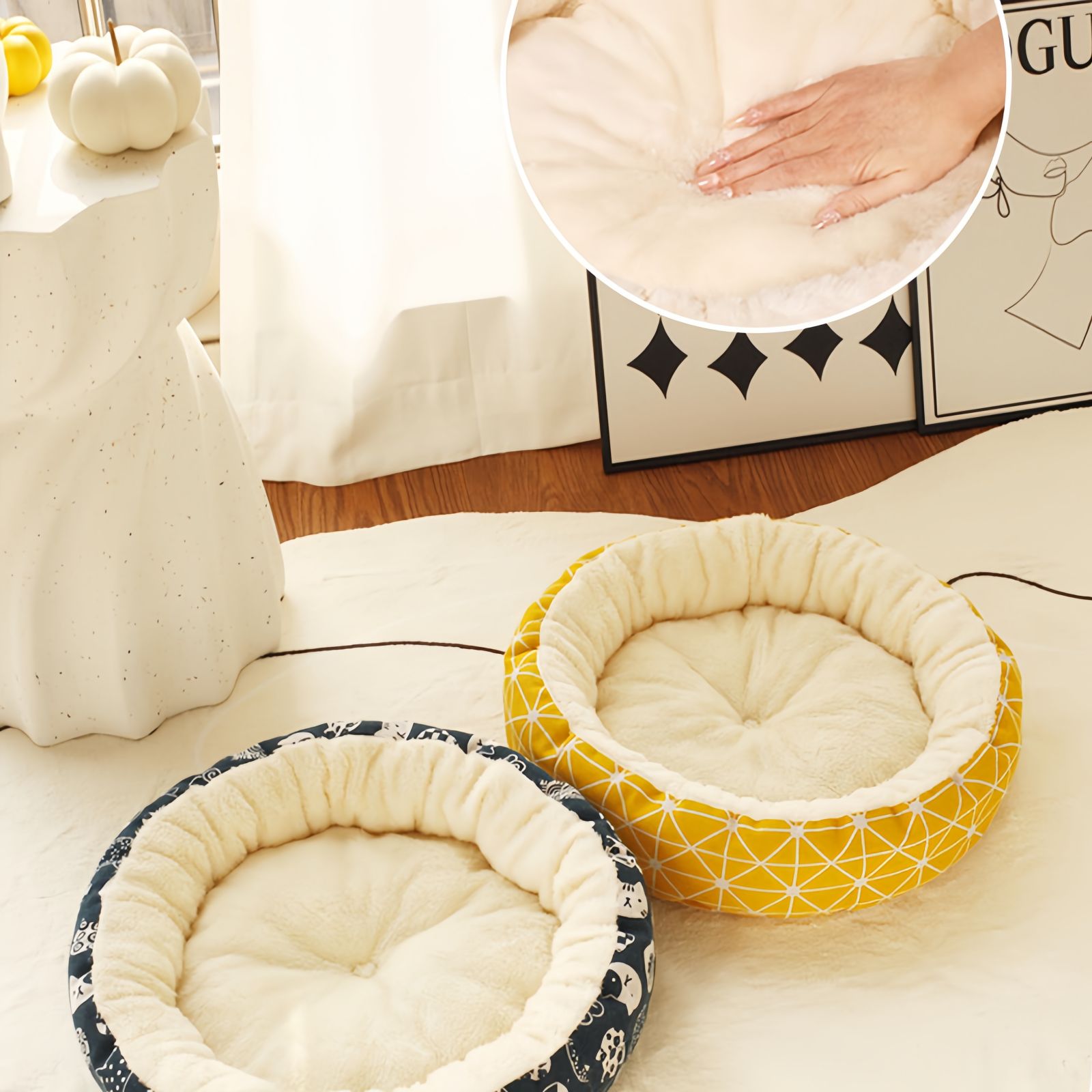 Give your pet a warm and inviting place to relax with this round donut cat bed designed for everyday comfort. The plush padded interior creates a soft sleeping surface, while the raised edges provide gentle support that helps pets feel secure and settled. Designed for both indoor and outdoor use, this cozy pet bed fits easily into living rooms, bedrooms, or pet corners, offering a familiar resting spot wherever your pet prefers to relax. With charming printed patterns and a supportive structure, this round cat bed combines comfort, style, and functionality for cats and small dogs.