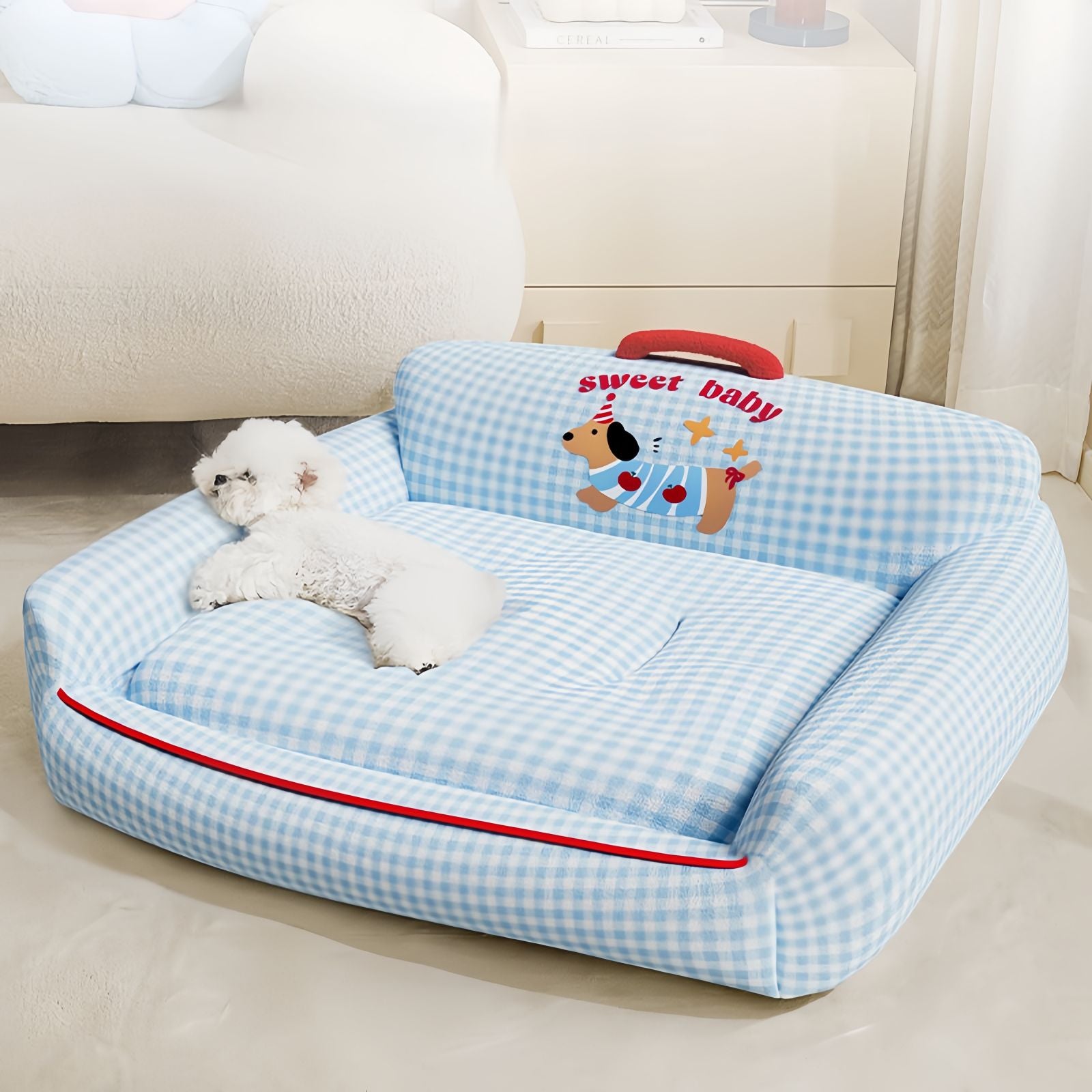 Designed to feel like a mini sofa for your pet, this dog couch bed and cat sofa bed creates a soft and supportive space for daily lounging and sleep. The raised bolster edges provide gentle support around the body, helping pets feel secure and relaxed while resting. A plush sleeping surface offers warmth and comfort, while the spacious center allows pets to stretch out or curl up naturally. Whether placed in the living room, bedroom, or beside the sofa, this pet sofa bed adds both comfort for your pet and style to your home.
